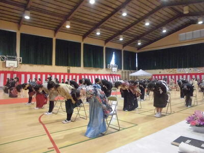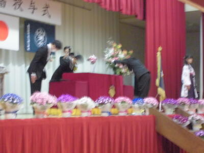 (式が終わり卒業生が退場します。大きな拍手で見送られます。卒業生は最後まで立派な態度でした。)