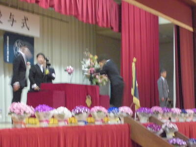 (卒業証書授与です。壇上で校長先生から一人一人が受け取ります。)