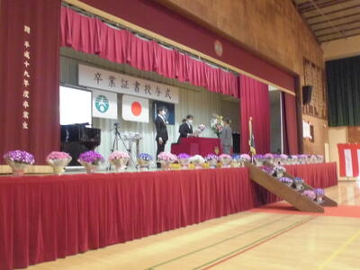 (卒業式の会場もきれいに準備されています。)