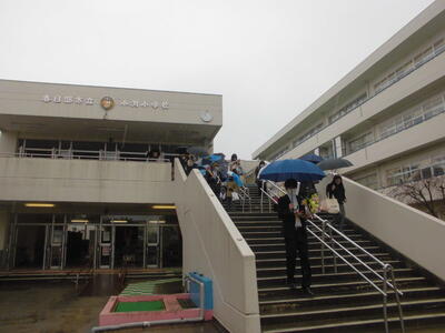 このあと教室での最後の学級活動をおえて、子供たちは交通安全ボランティアさんに見守られながら下校しました。