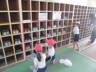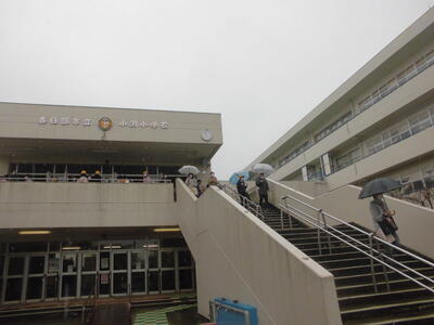 小渕小の朝は、一(いち)運動。子供たちが外に出て、自主的に運動する時間です。昨日の朝は雨で校庭が使えなかったので、6年生が卒業してから、始めて2~6年生だけの一運動です。