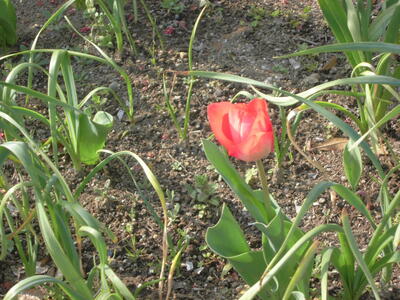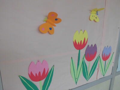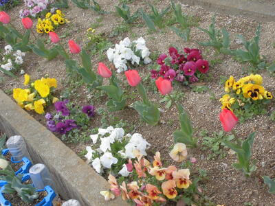 学校のあちこちでは、チューリップが咲き始めています。