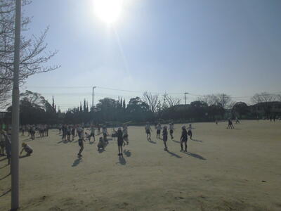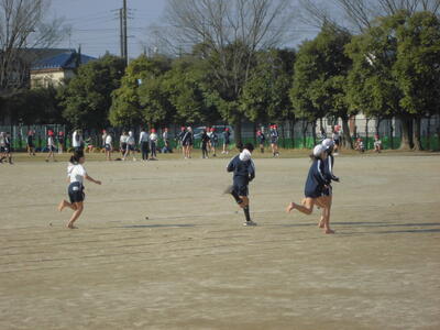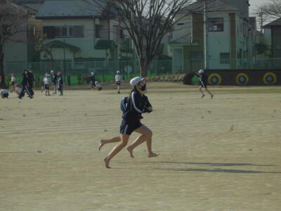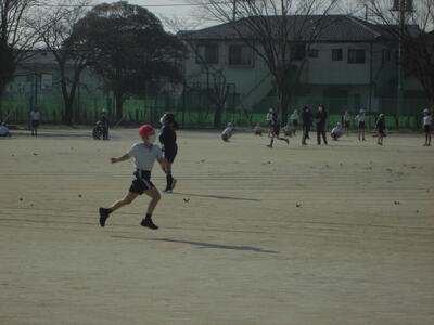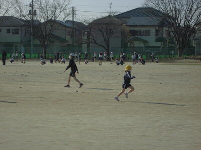 ( 元気に校庭を駆けています。)