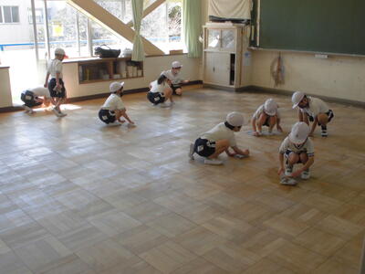 ( なわとびや、ダッシュなど、それぞれが運動に取り組んでいます。)