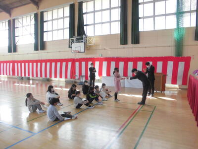 校長先生から、各学年の代表児童に修了証が手渡されます。