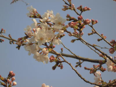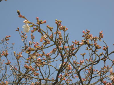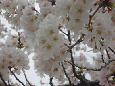 春休み3日目になりました。曇り空ですが、あたたかくなり、桜がずいぶん咲きました。