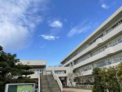 ( ↓今日の学校。雲はありますが、晴れています。)