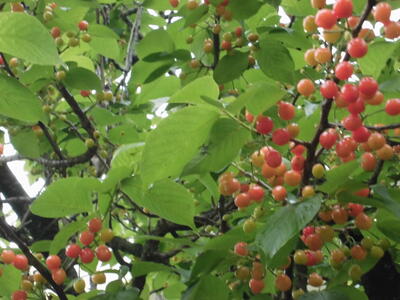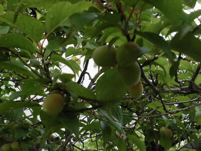 ( ↓ 学校の木々にもいろいろな実がなり始めました。)
