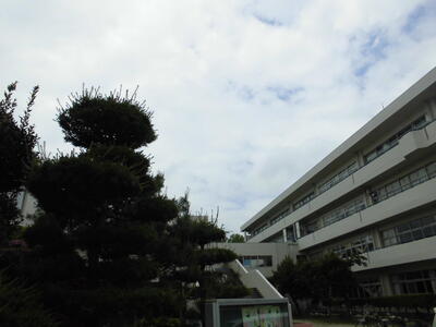( ↓ 青空の下の今日の学校 )