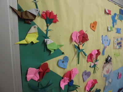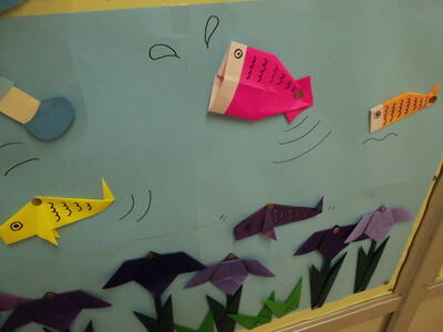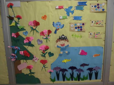 学校の中の掲示物も5月をイメージしたものが飾られています。