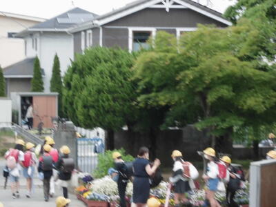 ( ↓ 子供たちが班ごとに下校していきます。)