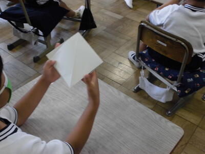 (紙にしっかり折り目をつけながら、折っていくことで指の力を使ったり、折った紙を、音が鳴るように、思い切り腕を振り下ろすことで、肘や肩の使い方を覚えて子供たちの弱点である握力や投力の向上につながります。)