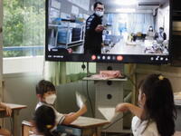今日の学校は午前授業のみで、子供たちは下校となりました。午後は、春日部市内の小中学校の先生達が参加する教育研究会がありました。各学校をオンラインで結んで、会議や研修をおこないました。