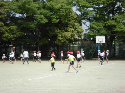 もうすぐ、子供たちの体力を測る体力テストの時期です。体育の授業などで、その練習に取り組んでいます。