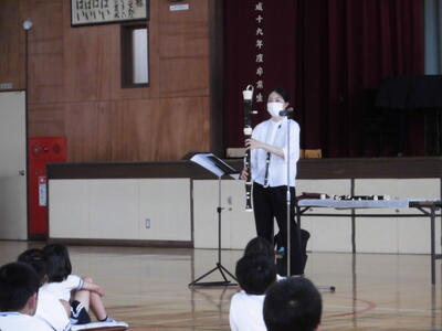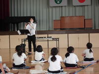いろいろな種類のリコーダーの説明を聞いたり、子供たちがよく知っている曲を演奏してもらったりしました。