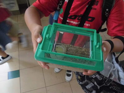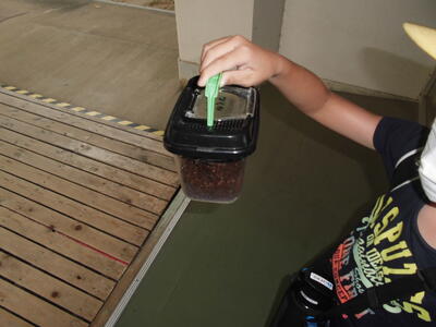 ( ↓ 虫カゴで虫を持って帰る子もいます。)