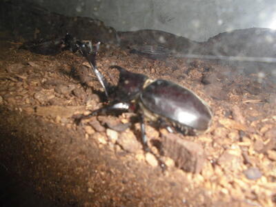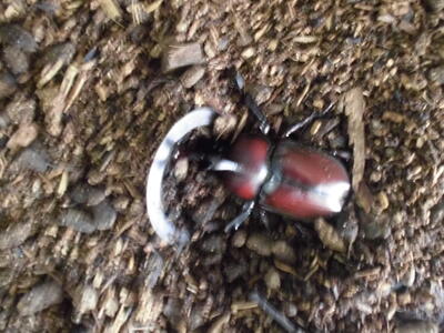 学校では、地域の方からいただいたカブトムシの幼虫が、元気な成虫となりました。