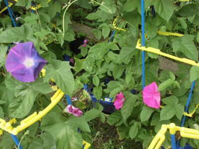 もうすぐ夏休みです。学校では、一年生が育てたアサガオや、二年生が育てたミニトマトが順調に育ちました。