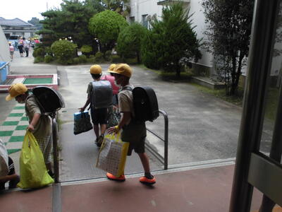 今日は学期末の特別日課です。子供たちは、いつもより早めの下校となりました。