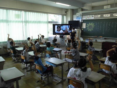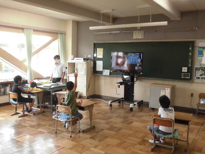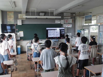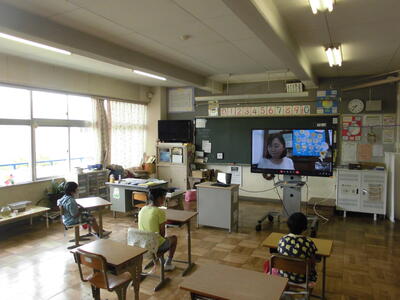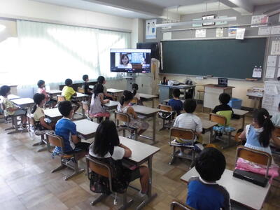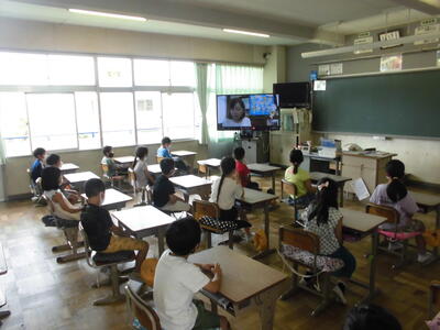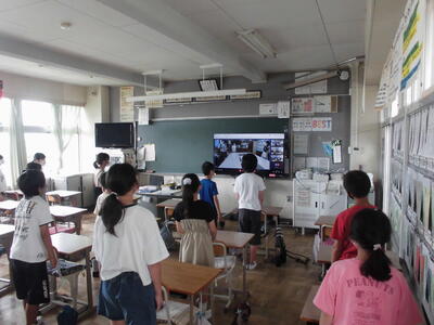 本日で一学期は終了します。終業式は、感染症対策・熱中症対策のため、体育館で一斉には集まらずに、校長室・職員室・各教室をリモートで結んで行いました。