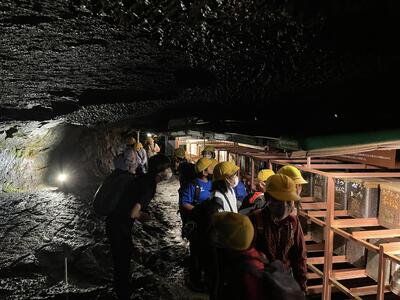 9:20 班ごとに、館内の見学をしています。富士山頂の寒さや強風を体験するコーナーもあります。