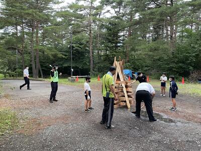 18:20 係がキャンプファイヤーのリハーサルを行っています。