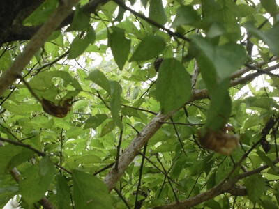 ( ↓ あちこちでセミの抜け殻が見つかります。たくさんのセミが無事に成長した証拠です。)