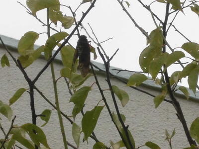 今日の空は曇りがちですが、学校の木ではたくさんのセミが鳴いています。あちこちの木から、さまざまな種類のセミの声が響きます。