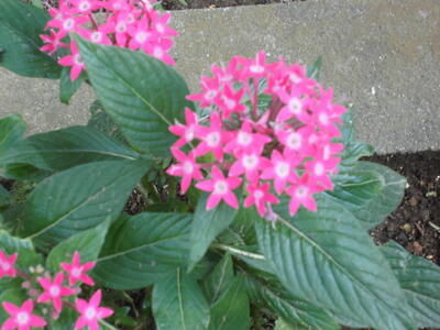 暑い日が続いていますが、学校の玄関前にはきれいな花が咲いています。