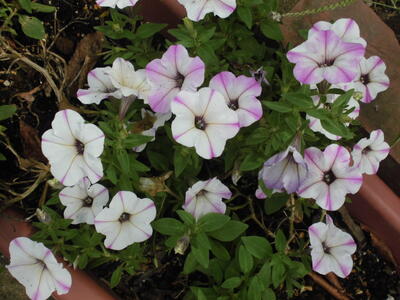 ( ↓ 色とりどりのアサガオの花が、立体的に咲いています。)