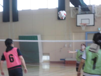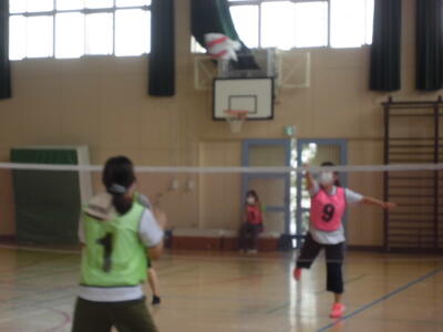 ( ↓ 体育館では、体育実技の研修をおこないました。子供たちの投力などの体力を高めるため、力の使い方を正しく教えたり、楽しみながら取り組ませたりするための研究です。)