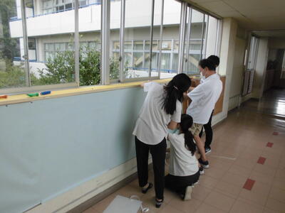 夏休みの残り3日となりました。新学期に向けて、学校では掲示物の貼り替えなどをおこなっています。