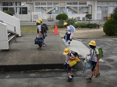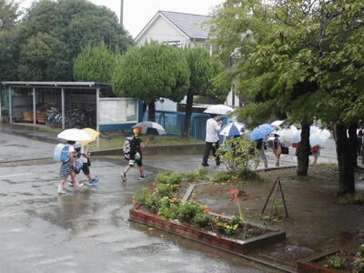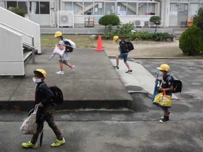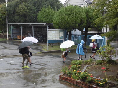 三連休あけの学校です。台風の影響が心配されましたが、通常の登校となり、子供たちが登校してきています。