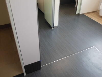( ↓ 床はタイルではなく、リノリウムのようなシート状になっています。)
