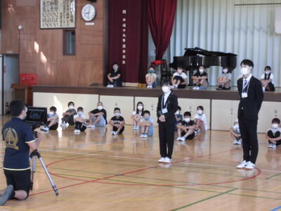 今日から4週間の教育実習が始まりました。2名の実習生が、子供たちと一緒に活動し、教員としての実習をおこないます。今日は子供たちに自己紹介をしました。