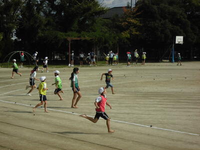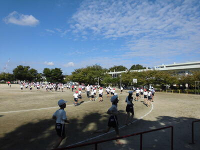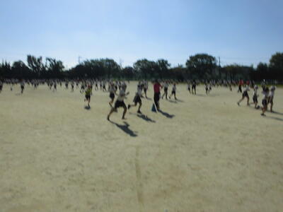( ↓ 今日の朝は、さわやかタイム。全校で運動する時間です。今日はインターバル走に取り組みました。)