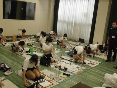 5時間目の6年生の書写の時間です。習字で『緑の大地』の文字を書きます。