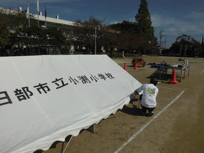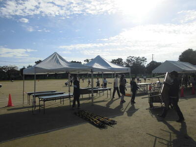 午後は、児童・職員、おやじの会の方、PTA役員の方で準備を進めました。