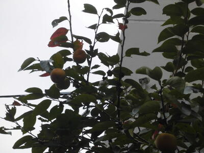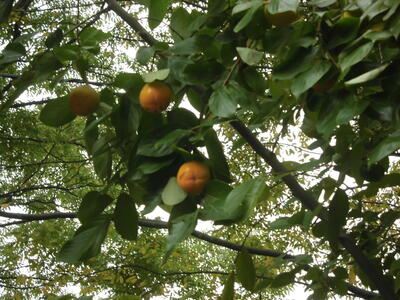 秋も深まってきました。学校のカキの木にはたくさん実がついています。