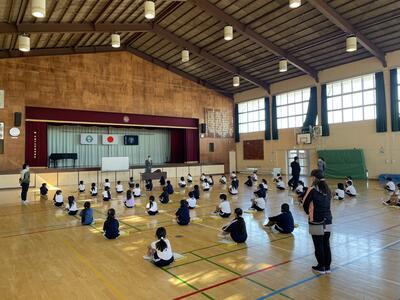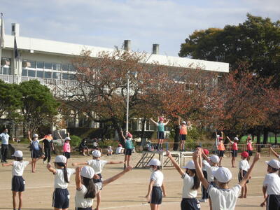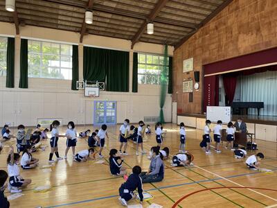 本日の朝は、さわやかタイム。全校で運動の時間です。