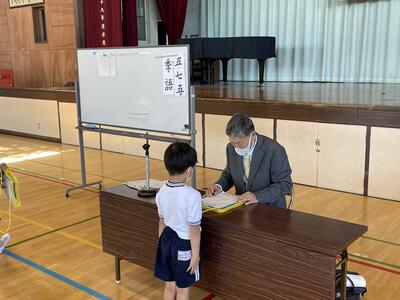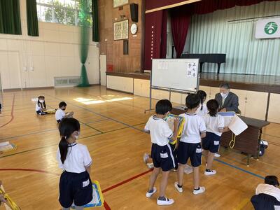 見た人の驚きが字に表れている表現について、アドバイスをいただきました。1年生も、これからたくさんの俳句を作っていきます。