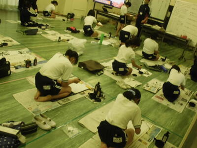 ( 視聴覚室で、間隔をじゅうぶんとっておこなっています。)