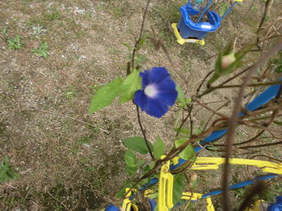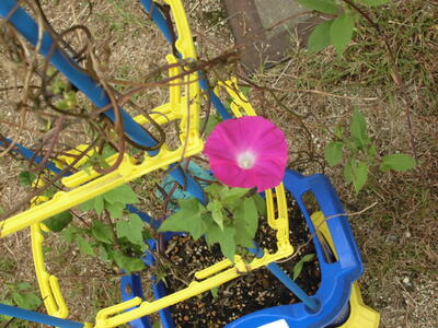 ( ↓ 10月中旬まで咲いていたアサガオ。このツルを刈り取って、使用しました。)