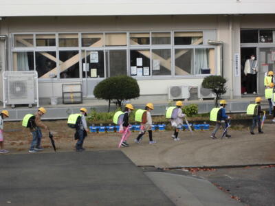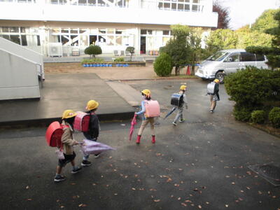 三連休明けの学校です。朝から降っていた雨も、低学年の下校時間にはやんで、陽が射してきました。