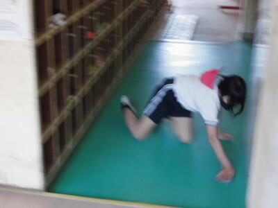 ( ↓ 多くの児童が自主的に校庭を走っています。)