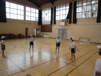 10:35 中学年が集まりました。準備運動などを行います。3、4年生は1000メートルを走ります。