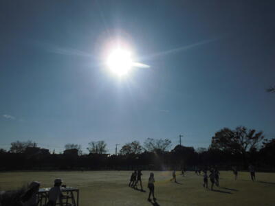 8:00 雲ひとつなく、よく晴れた空です。予定通り、持久走大会を実施します。