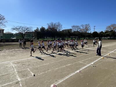 今週末には校内持久走大会が予定されています。今日の昼休みも、「RUN×3(ランランラン)」(持久走大会に向けて自分が走った周数を記録していく取組)で、自分の目標に向けて多くの児童が校庭を走っています。