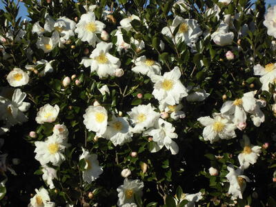 以前も紹介した学校のサザンカ、ますますきれいにたくさんの花を咲かせています。