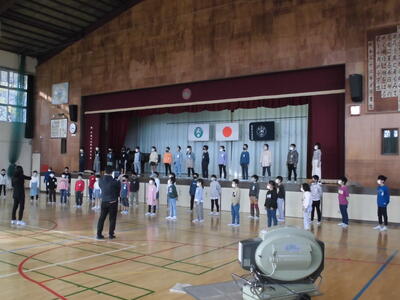 今日の朝は音楽朝会でした。体育館で3年生が今月の歌を発表しました。感染症対策のため、体育館と各教室をリモートでつないでおこないました。
